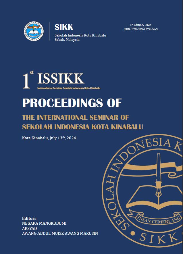 The papers in this proceeding have been presented in the 1st International Seminar Sekolah Indonesia Kota Kinabalu (ISSIKK) 2024 “Transformative Education for Sustainable Futures: Explore How Educational Transformation Can Foster Sustainability” on July 13 2024 in Hotel 7 Suria, Kota Kinabalu, Sabah, Malaysia. LINK DOWNLOAD